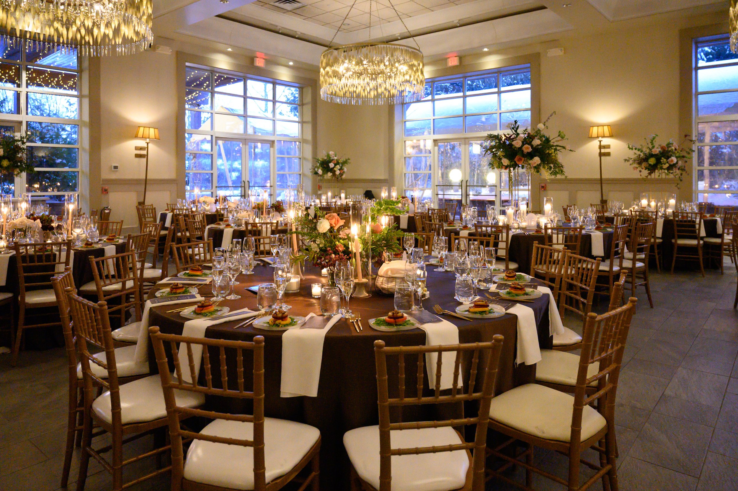 A warm and inviting winter wedding in the Grand Ballroom at Stonehouse at Stirling Ridge. Photo: Pivko Studio