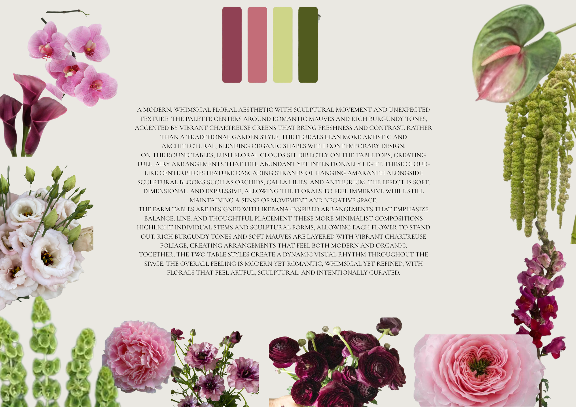Our mood boards are involved and show you an example of what everything will look like for your big day.